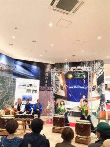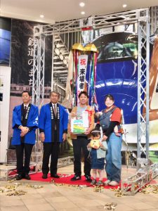 来場300万人突破を記念してのセレモニーでは、来場者の白山市からお越しの要様ご家族に田村敏和市長より、記念品として地元特産品詰め合わせを贈呈させていただきました。要様ご家族はお食事とお買い物を目的に道の駅に立ち寄ってくださいました。「こんな機会はめったにない事‼」と喜びの感想をいただきました。また、オープニングは彩&G3による和太鼓の演奏で華やかにスタートしました♪