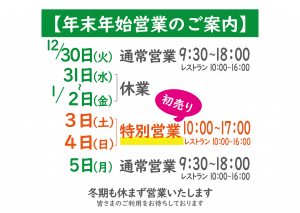【年末年始 休業日】 12月31日(水)・1月1日(木)・1月2日(金)