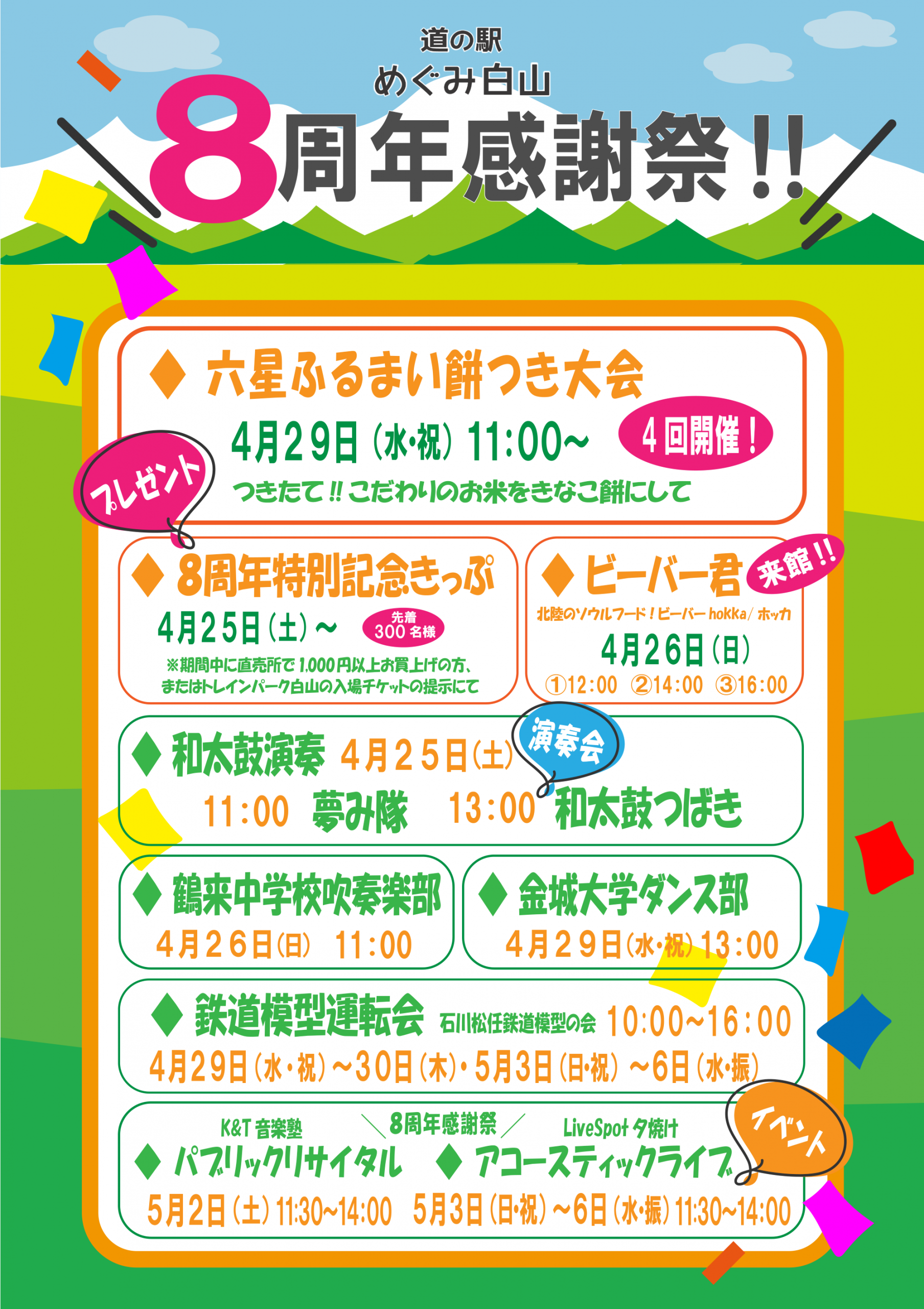 白山の美味しいもの、楽しいこといっぱいの寄り道ステーション!道の駅めぐみ白山へ、ゴールデンウィークはご家族そろってお出かけください♬